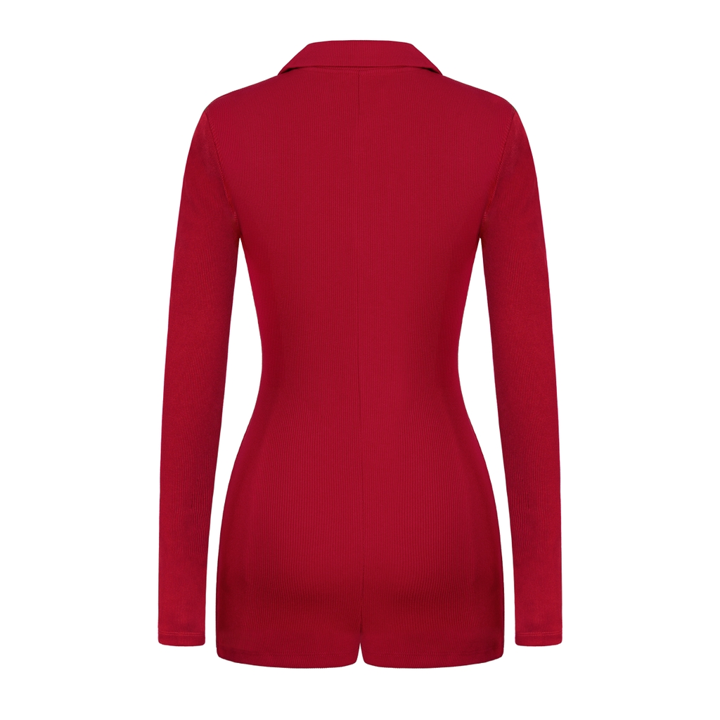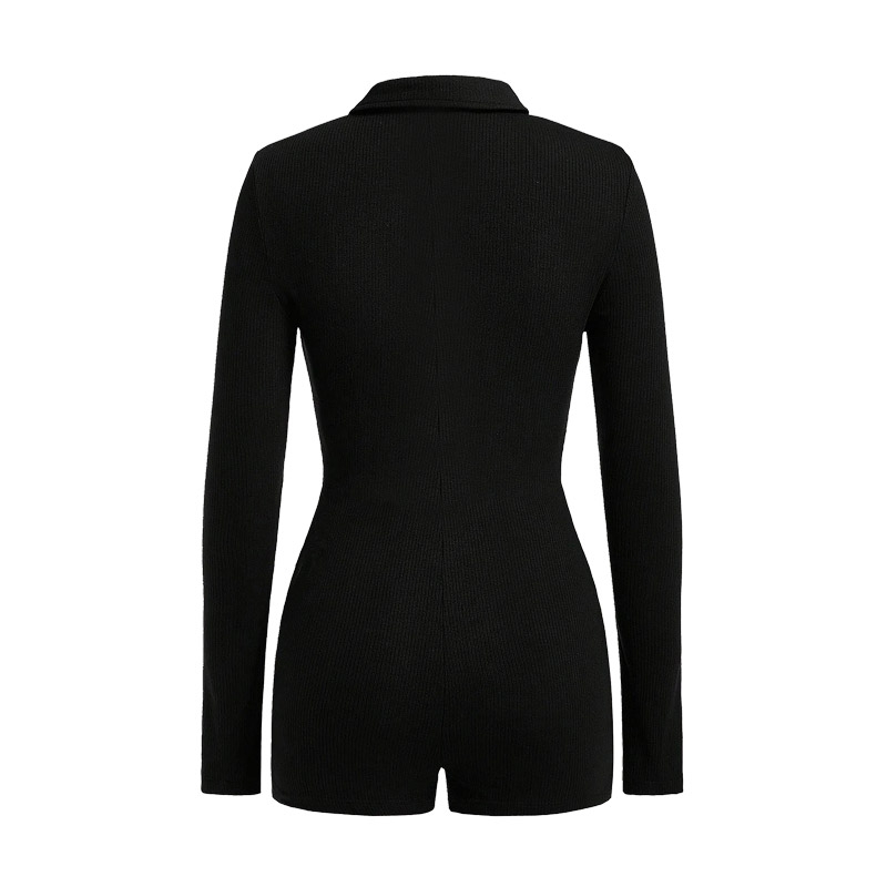 Kiểu dáng jumpsuit cổ bẻ này, kết hợp với cổ tay ngắn mang đến một phong cách năng động, hiện đại nhưng cũng không kém phần sexy và gợi cảm.