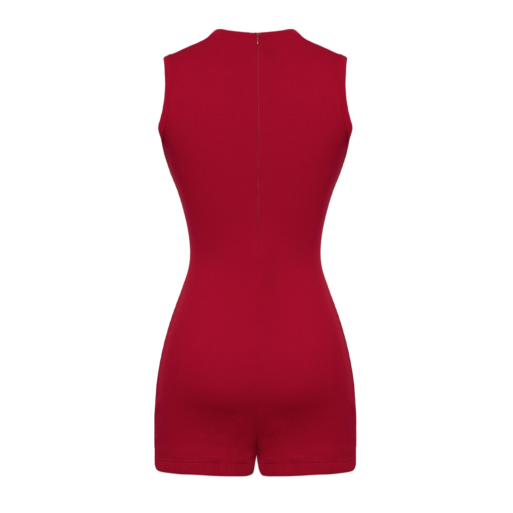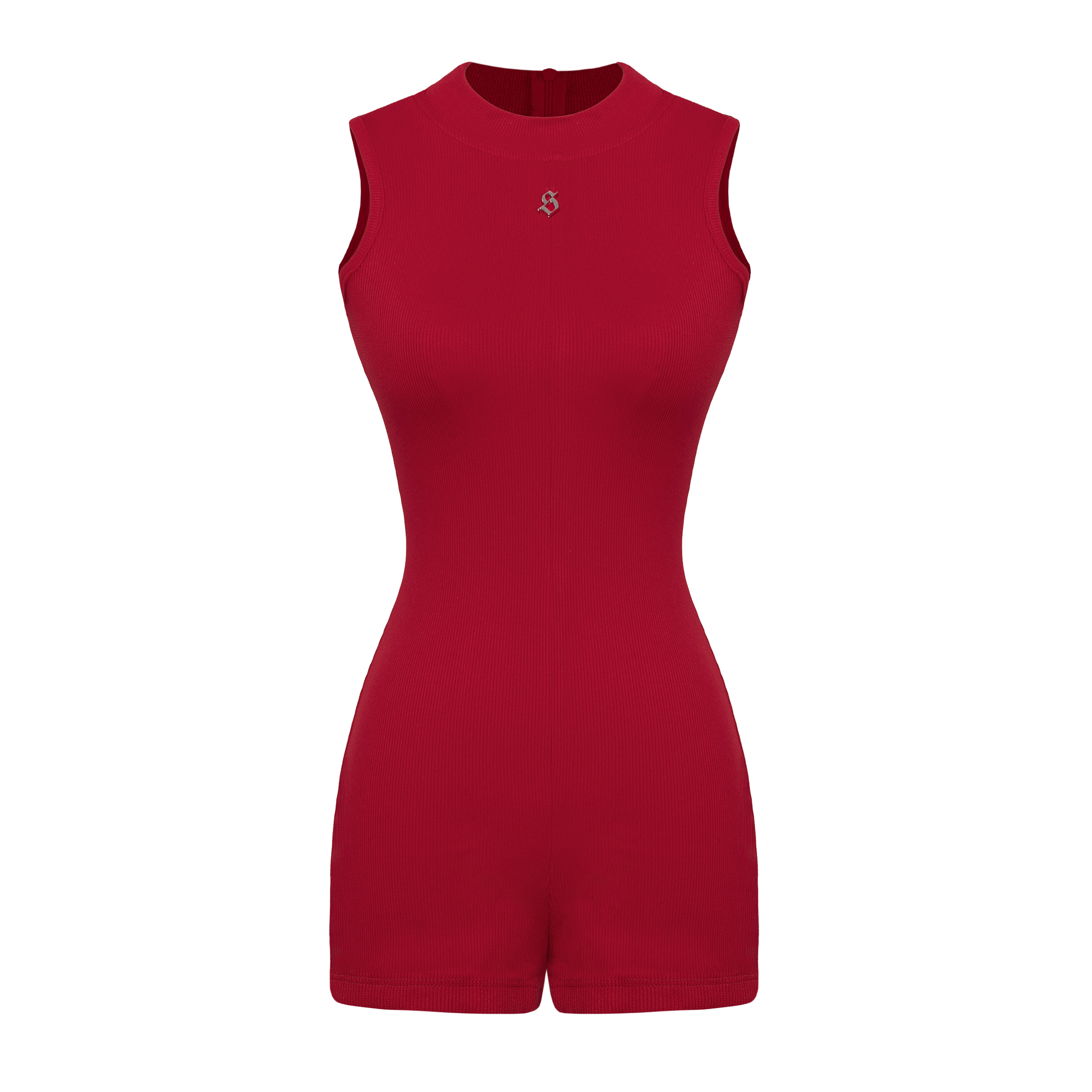Phong cách sang trọng đan xen sự quyến rũ trong từng đường nét, ôm sát mọi đường cong trong chất vải thun gân ruby mềm mịn.