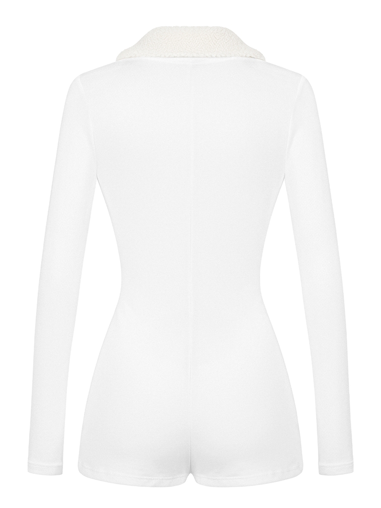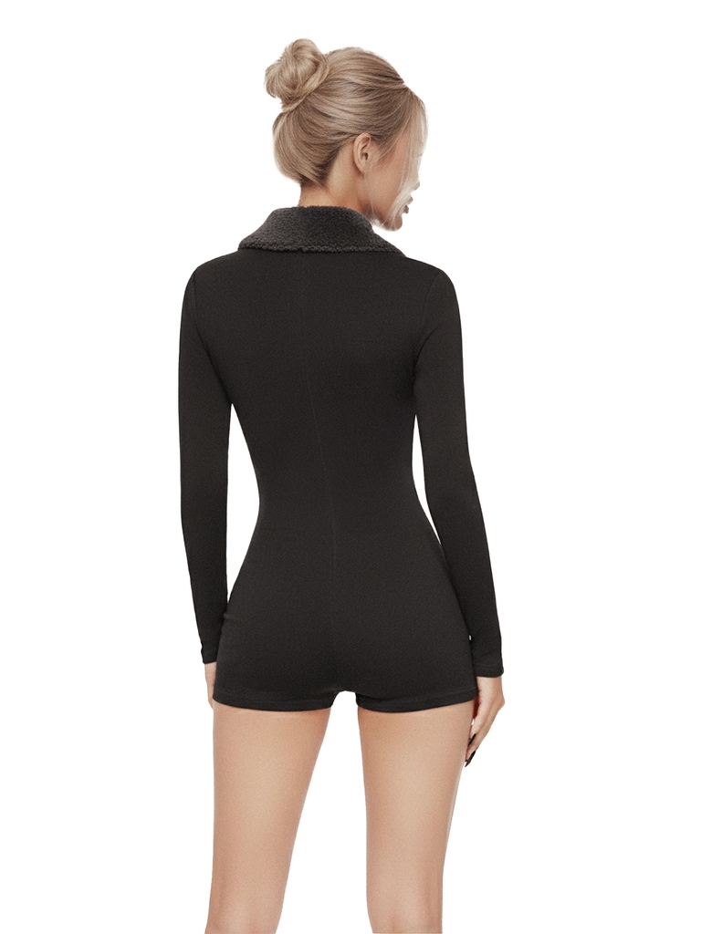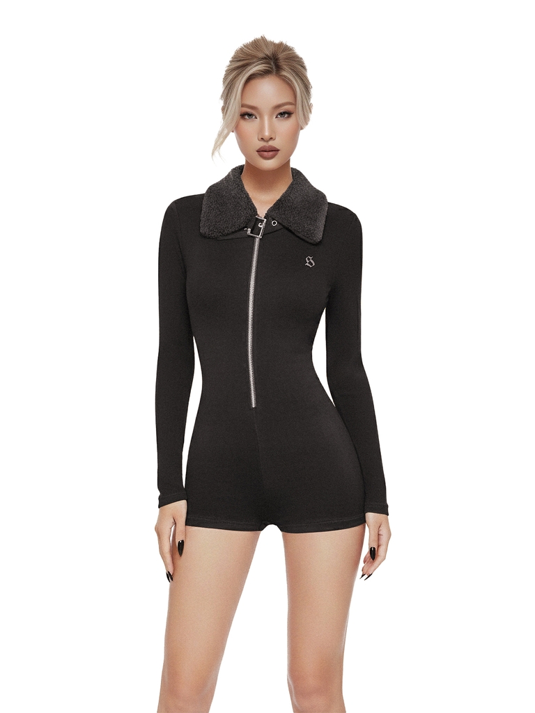 Kiểu dáng Jumpsuit đùi dài tay ôm sát body, cổ bẻ hiện đại. Độ dài đùi hoàn hảo giúp "khoe trọn đôi chân thon" và kéo dài tỷ lệ cơ thể, mang lại vẻ ngoài nữ tính tuyệt đối và gợi cảm.