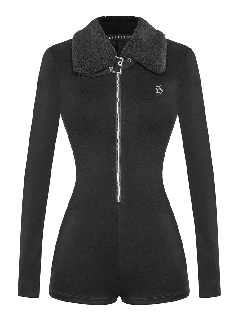Điểm nhấn thời thượng với cổ bẻ phối lông cừu mềm mại. Khoá kéo kim loại giữa áo, cổ có khoá và dây khóa đóng mắt cáo, đặc biệt là logo chữ 'S' inox được đính tinh xảo – dấu ấn riêng biệt của SISTERS.