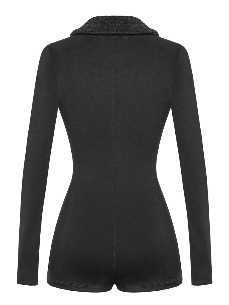 Jumpsuit có form đùi dài tay cổ bẻ ôm sát, thiết kế tinh tế giúp “nịnh dáng” tối đa, tôn trọn tỷ lệ cơ thể và kéo dài tỷ lệ chân.