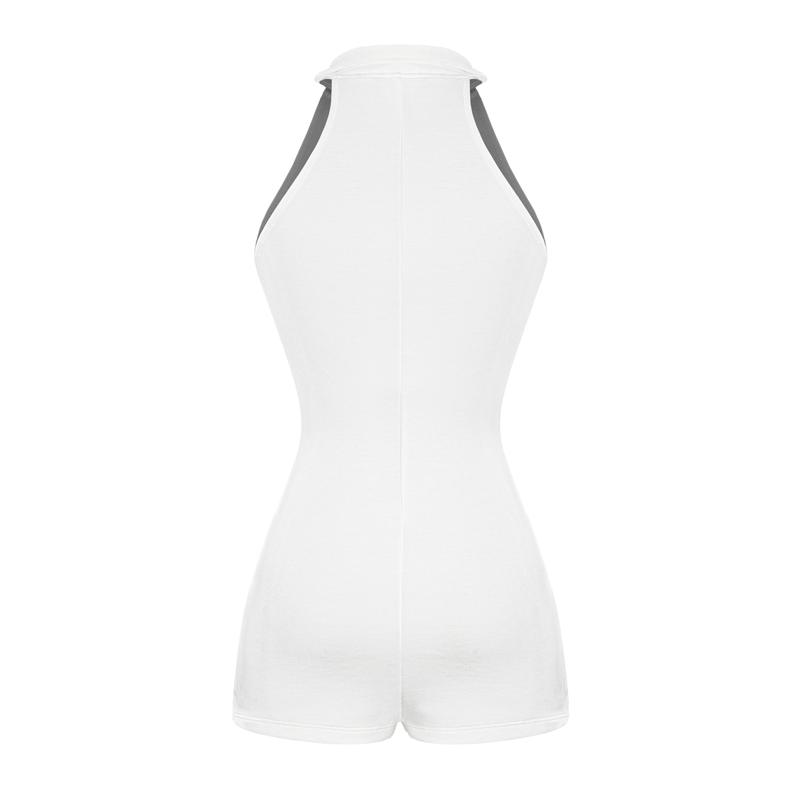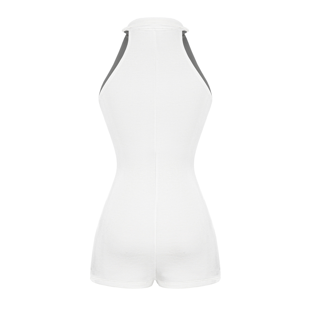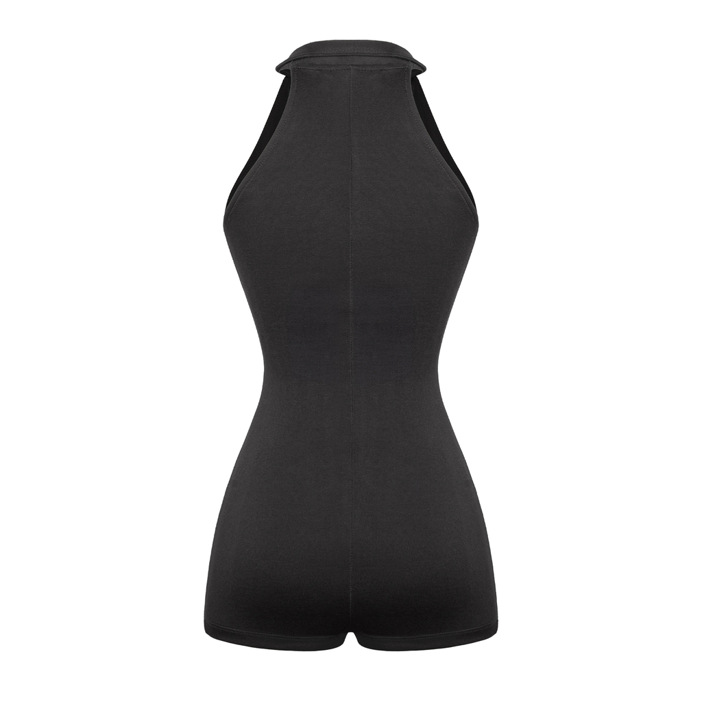 Jumpsuit có dáng cổ trụ phá cách kết hợp xẻ ngực, mang đến sự quyến rũ đầy tự tin, cùng khóa kéo hiện đại kết hợp logo inox tỉ mỉ, làm bật lên vẻ sang trọng và cao cấp.