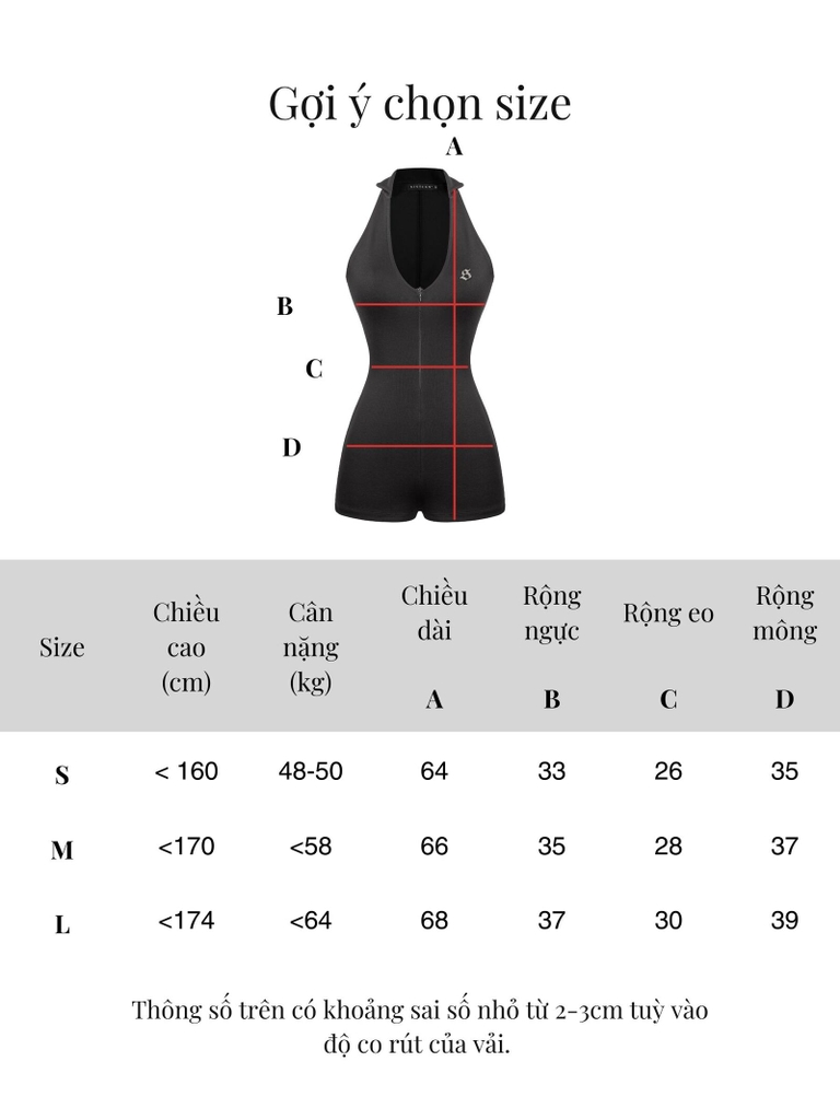 | Size | Rộng eo | Rộng ngực | Rộng mông | Chiều dài |
