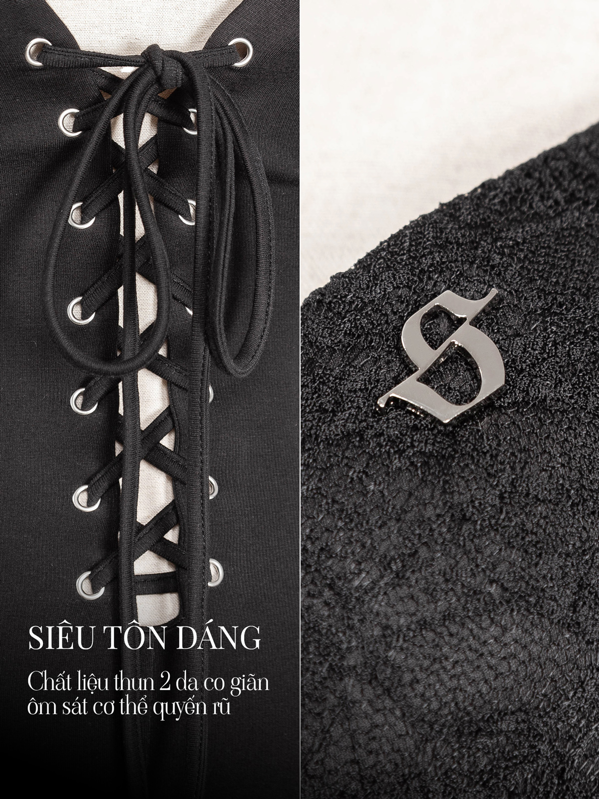 Chất liệu thun 2 da mềm mướt ôm khít cơ thể, siết nhẹ vòng eo và làm nổi bật từng đường cong nóng bỏng. Chi tiết đan dây siết dáng chạy dọc thân tôn lên bờ eo thon, khơi gợi sức hút nữ tính trong từng chuyển động.