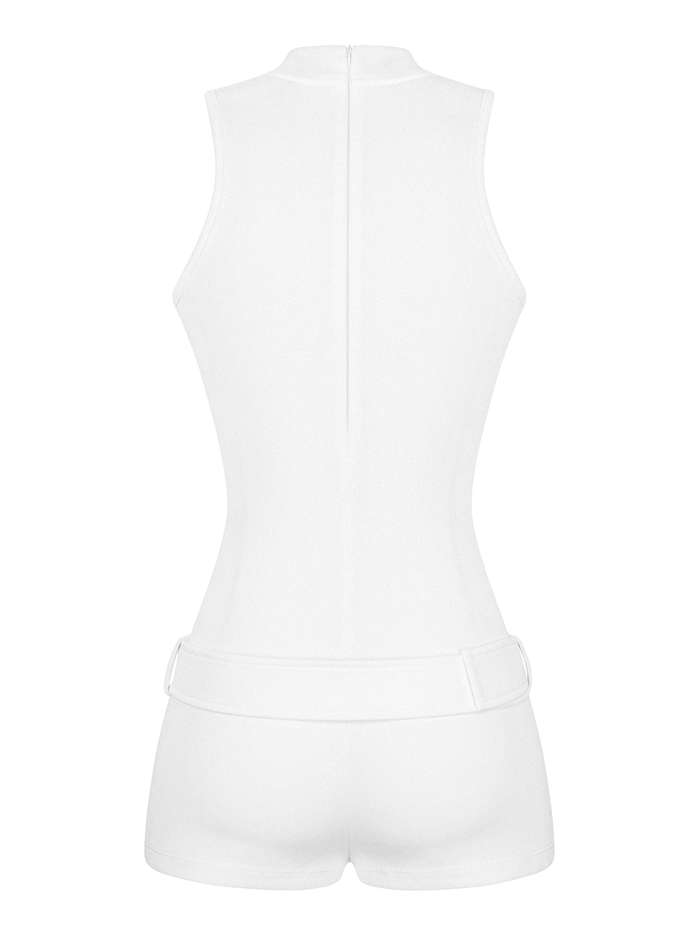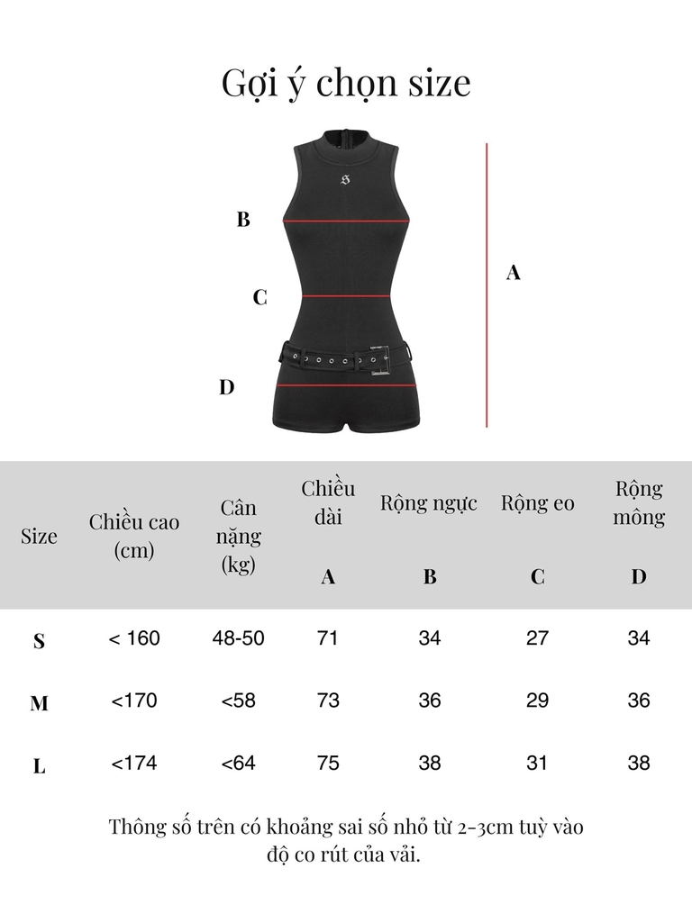 Thiết kế Jumpsuit đùi liền thân, kiểu sát nách, ôm body hoàn hảo, giúp kéo dài tỷ lệ chân và phô diễn sự quyến rũ tuyệt đối.