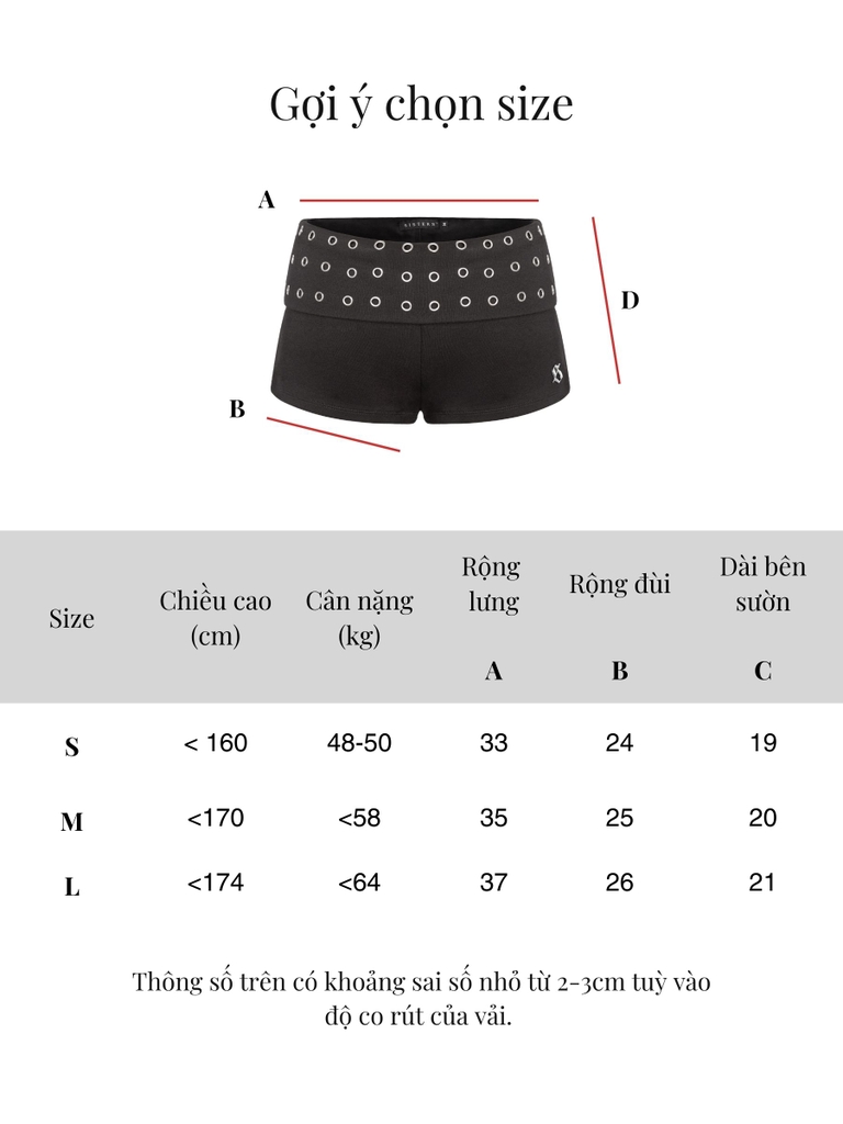 | Size | Rộng lưng | Rộng ống quần | Chiều dài |