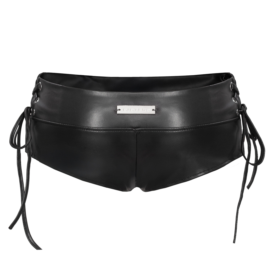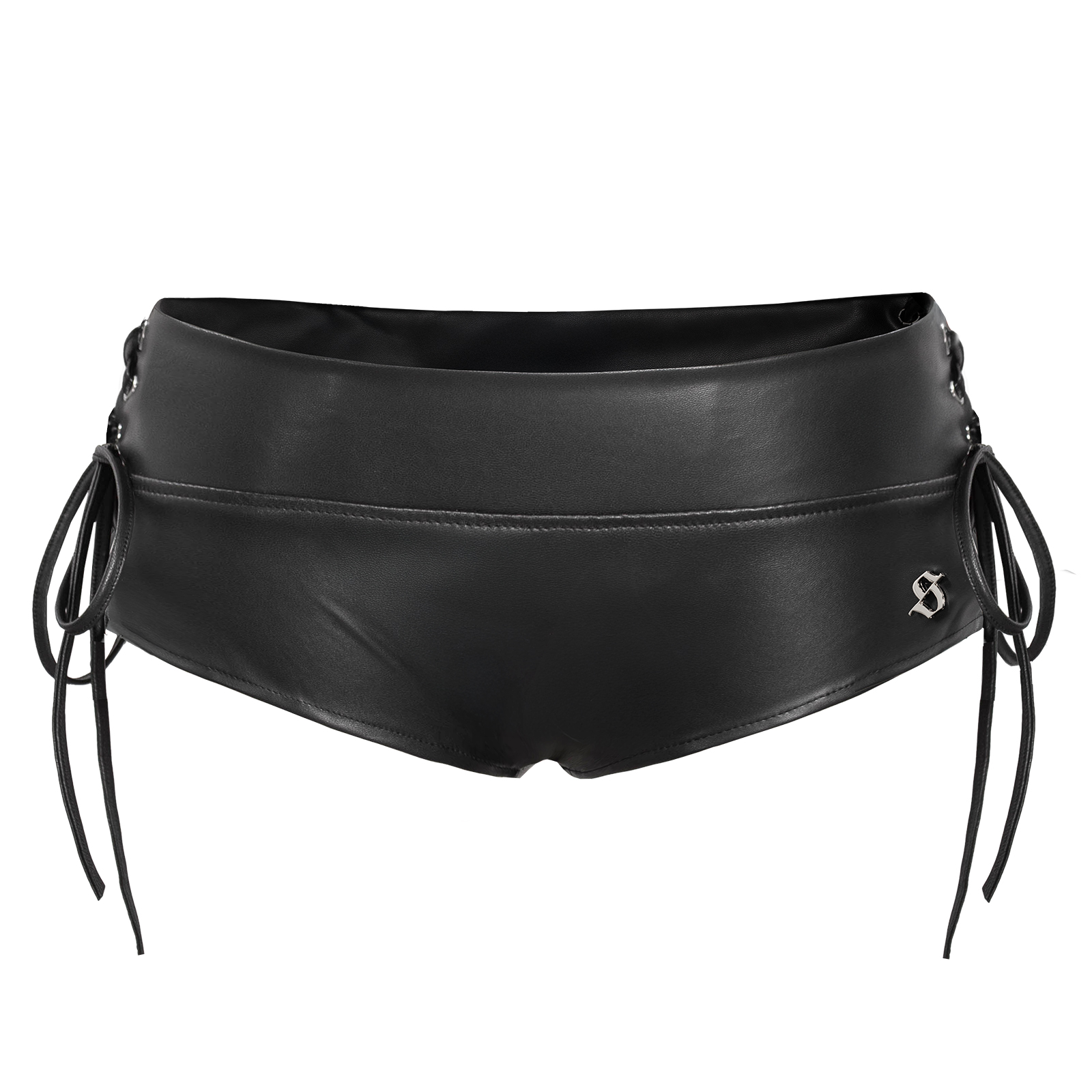 Thiết kế siêu ngắn ôm sát, tôn trọn vòng hông và đôi chân dài đầy cuốn hút. Chất da mềm mịn, ánh nhẹ, ôm khít cơ thể như lớp da thứ hai, mang lại cảm giác vừa mạnh mẽ vừa gợi cảm.