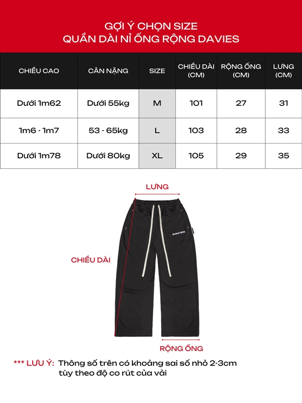 Quần nỉ dài ống rộng Davies - Phong cách hiphop đường phố nổi bật