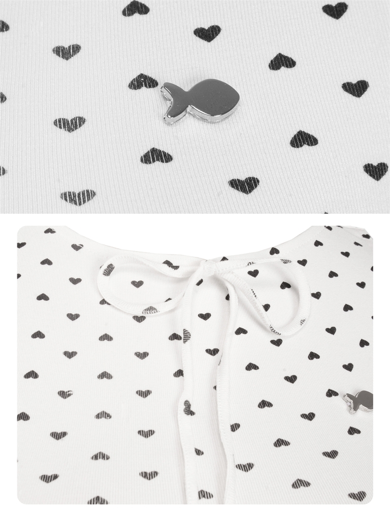 Họa tiết trái tim đen nổi bật trên nền trắng hoặc xám, nhẹ nhàng nhưng đủ làm nổi bật cả outfit.