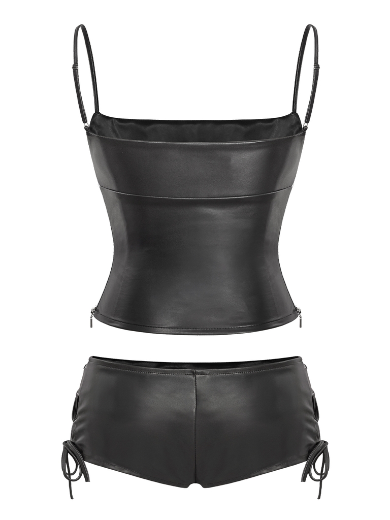 Set áo hai dây quần mini short da Isism được sản xuất tại Việt Nam, tôn vinh vẻ đẹp của người phụ nữ.