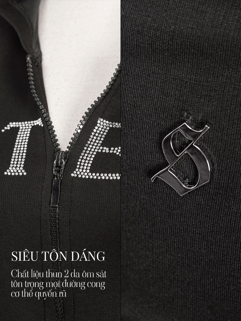 Điểm nhấn lấp lánh từ chữ SISTERS đính đá, logo kim loại nhỏ tinh xảo được đính ở cạp quần là dấu hiệu nhận biết các thiết kế của SISTERS. Kết hợp với khóa kéo zip tiện lợi, set đồ không chỉ đẹp mà còn tối ưu hóa tính ứng dụng trong mọi hoàn cảnh.