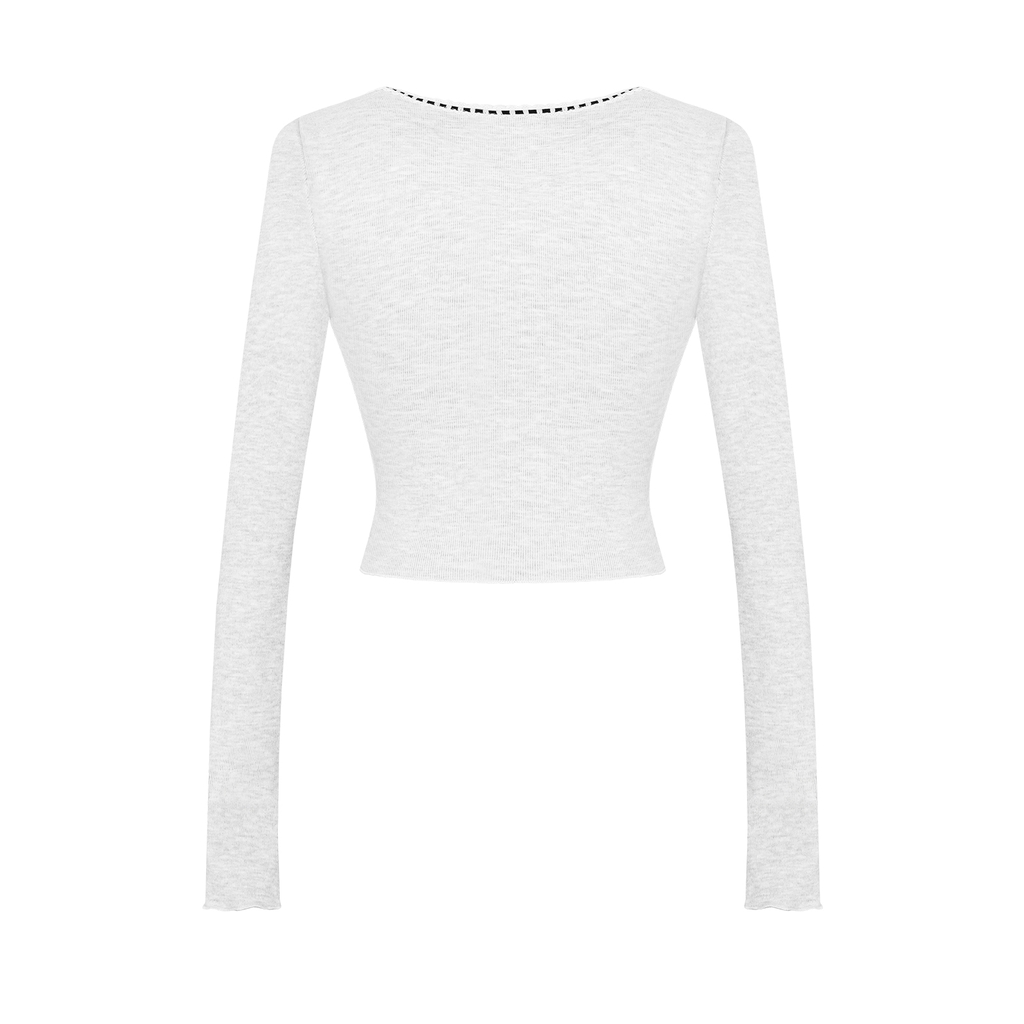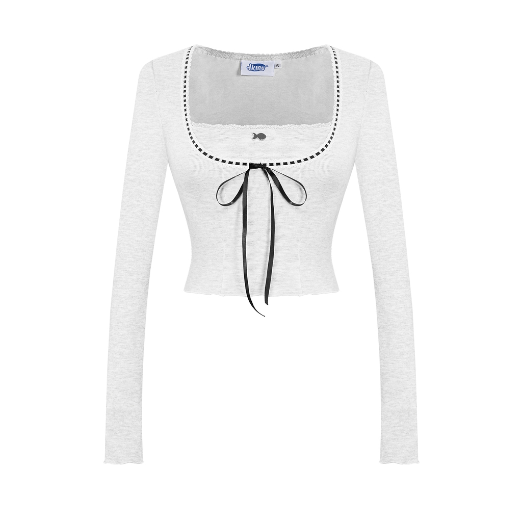 Chiếc áo croptop tay dài cổ vuông được thiết kế để làm bật lên vẻ e ấp và duyên dáng của bé. Những dải ruy băng thắt nơ nhỏ xíu kết hợp cùng đường phối ren tỉ mỉ tạo nên một phong cách điệu đà khó cưỡng. Chất vải mềm mại ôm nhẹ lấy cơ thể, mang lại cảm giác thoải mái và xinh yêu.
