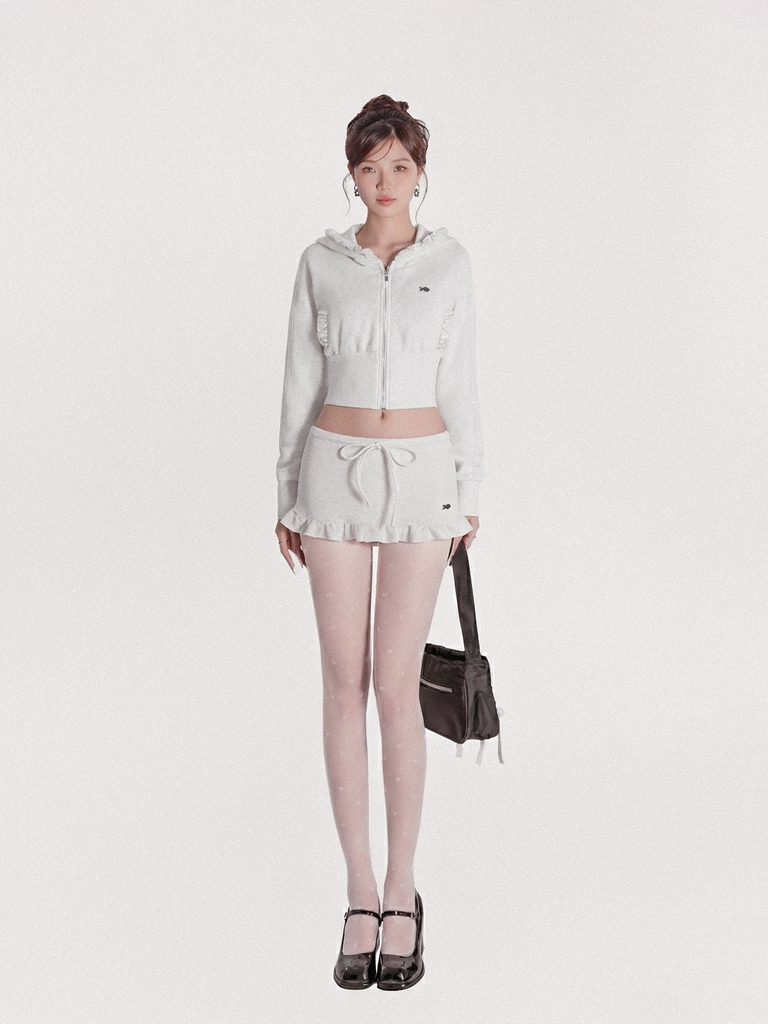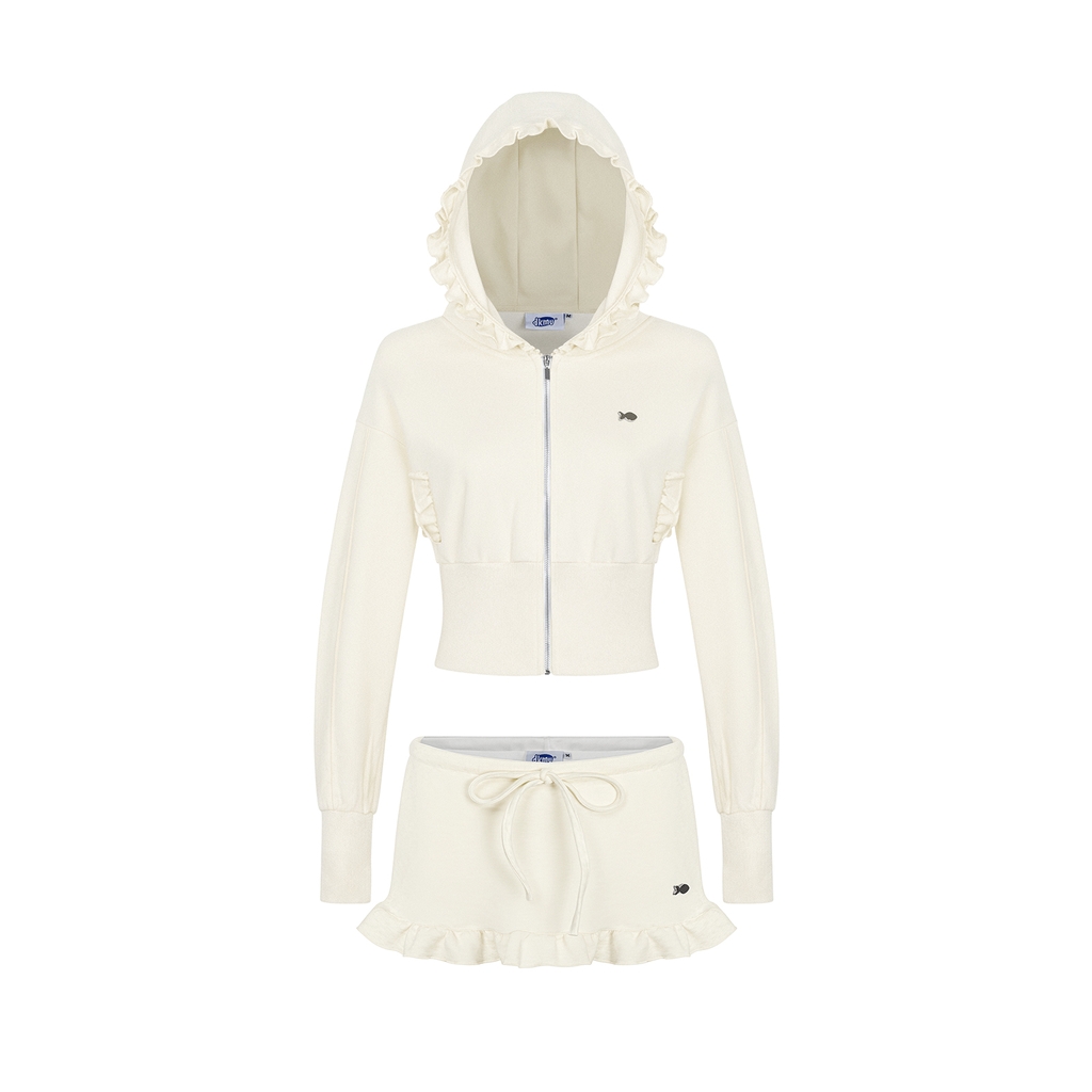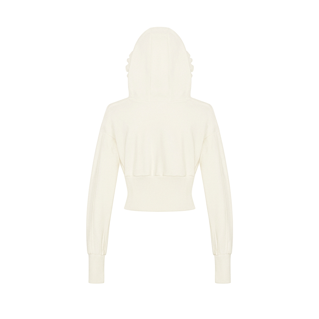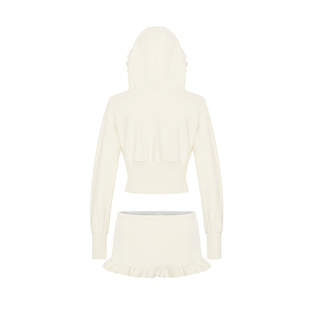 Cả set được chế tác từ chất liệu nỉ 2 da mềm mại, mang lại cảm giác thoải mái và ấm áp nhẹ nhàng, rất hợp với những ngày bé muốn điệu đà một cách e ấp. Chiếc áo khoác croptop có mũ tạo nên sự tinh nghịch và đáng yêu, giúp bé khoe khéo vòng eo xinh yêu của mình.