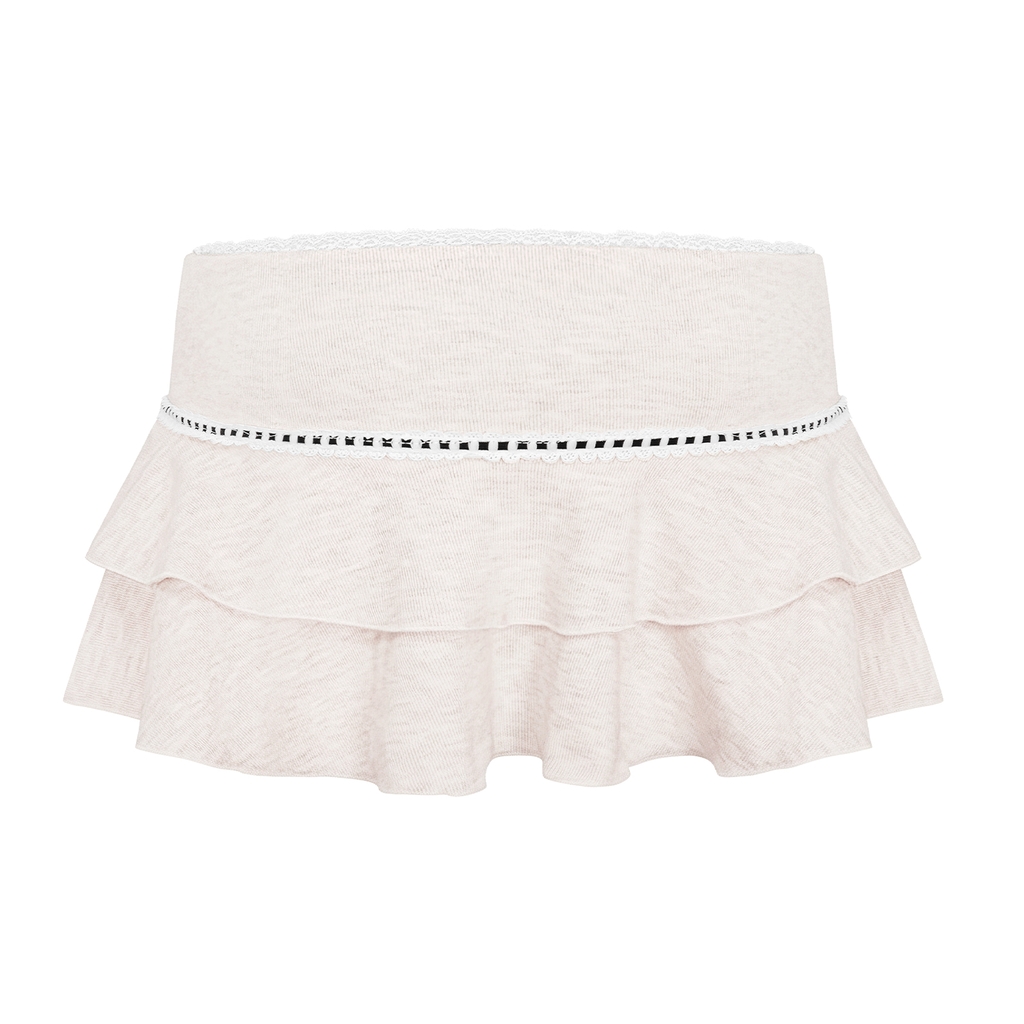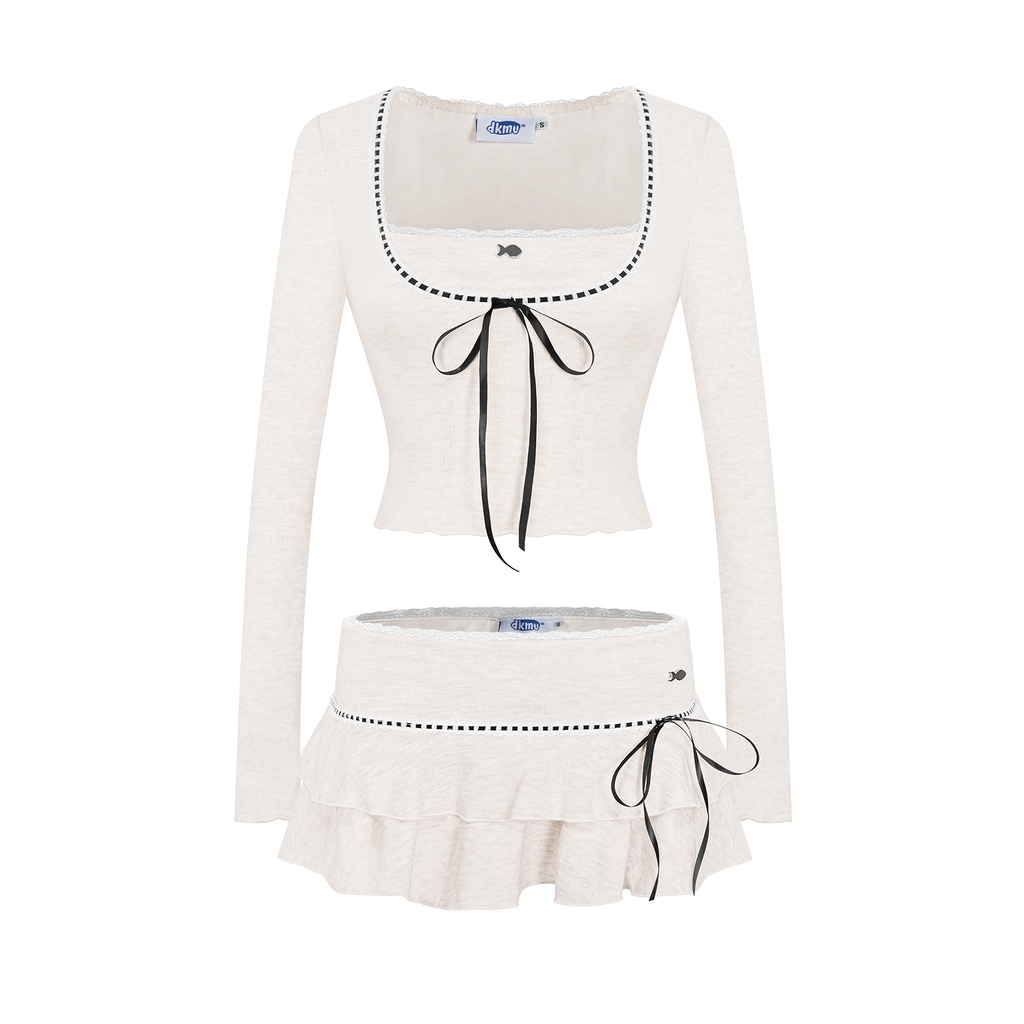Sắc kem của Ribbon Set mang đến cảm giác dịu ngọt và tinh khôi. Trên nền vải thun rib muối tiêu độc đáo, bộ trang phục hiện lên thật xinh xắn và kiêu kỳ.