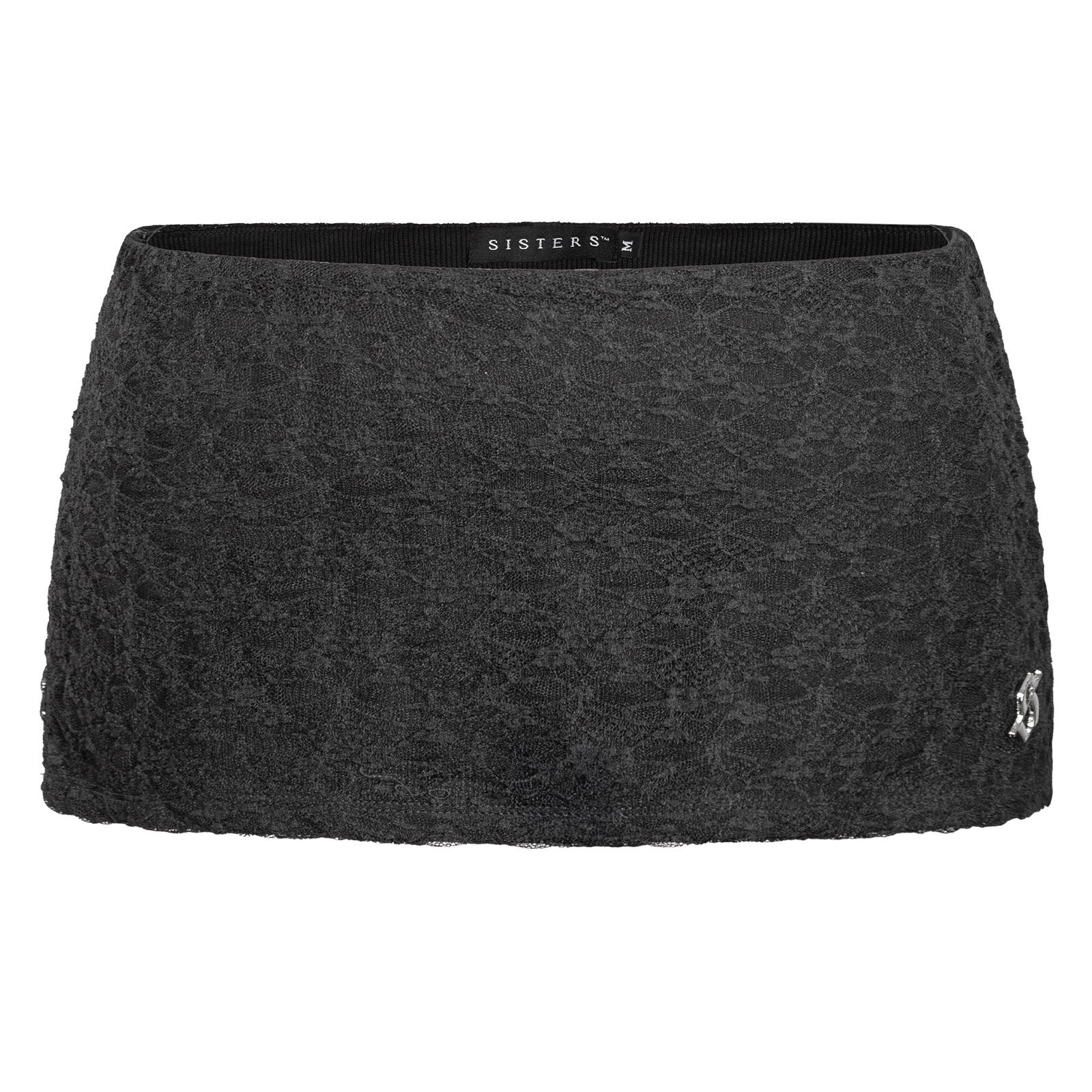 Set đồ nữ bao gồm áo hai dây dáng cúp ngực xuyên thấu đầy gợi cảm và chân váy ôm phối ren, điểm nhấn logo inox sáng bóng tăng thêm nét sang trọng.