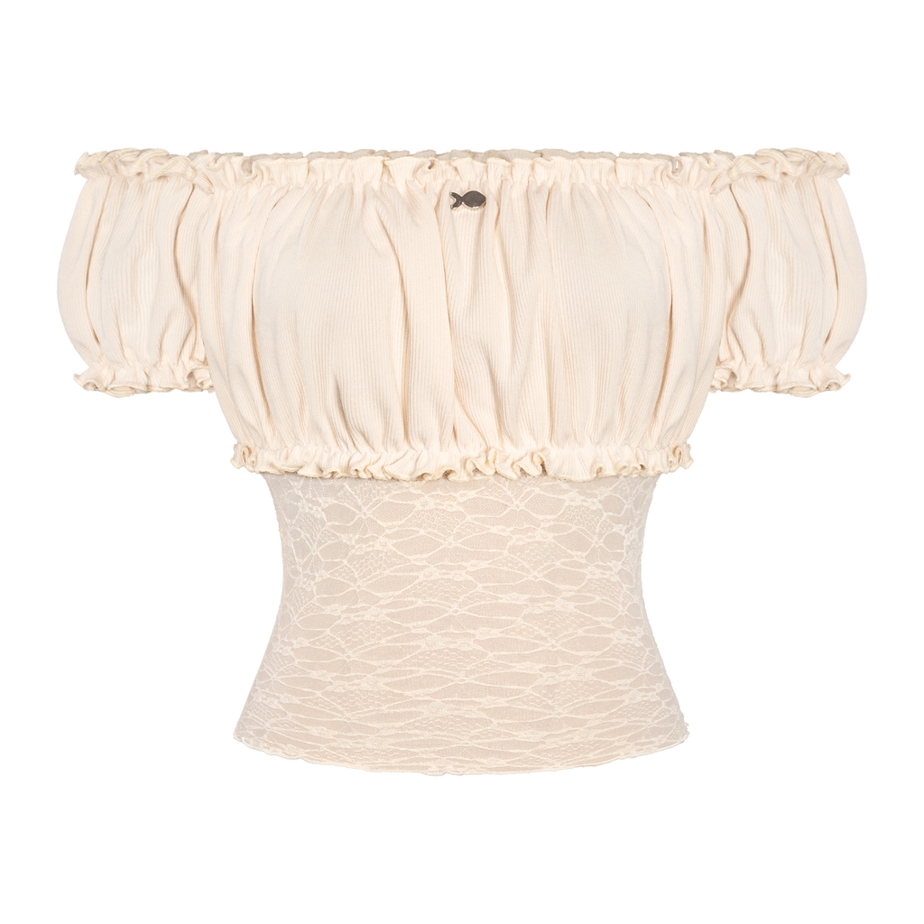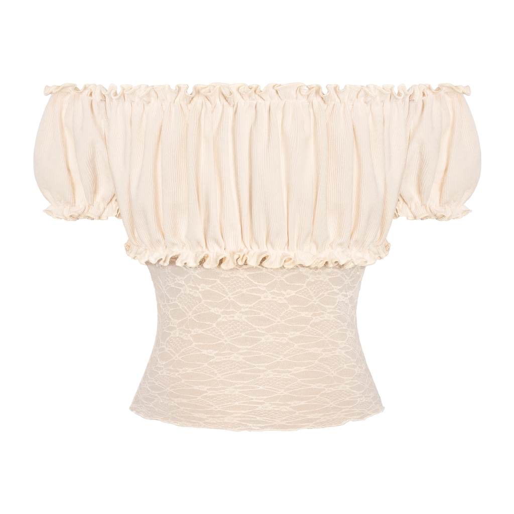 Kiểu trễ vai tay bồng điệu đà không chỉ giúp bé khoe trọn bờ vai thanh thoát mà còn tạo sự nữ tính tuyệt đối. Đặc biệt, phần phối eo ren xuyên thấu được xử lý tinh tế để tạo nên một sự lãng mạn và cuốn hút.