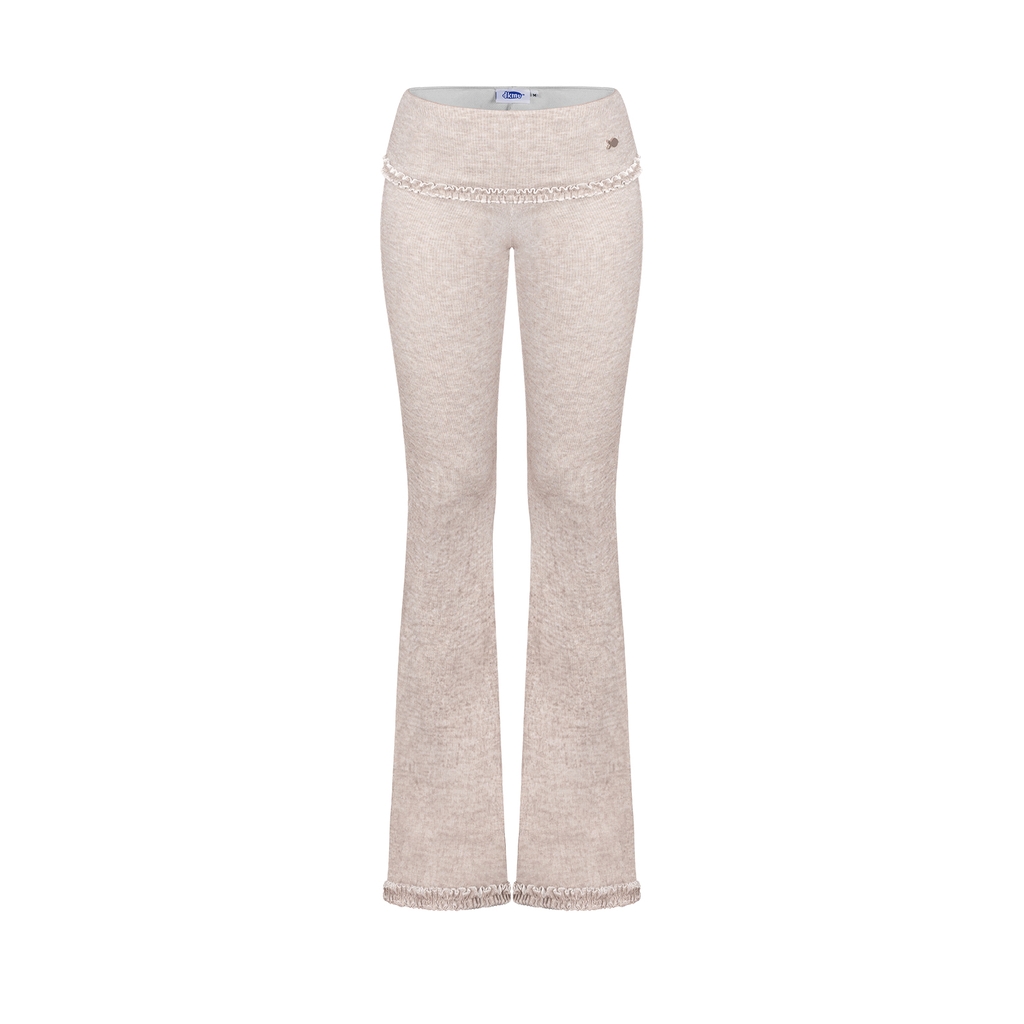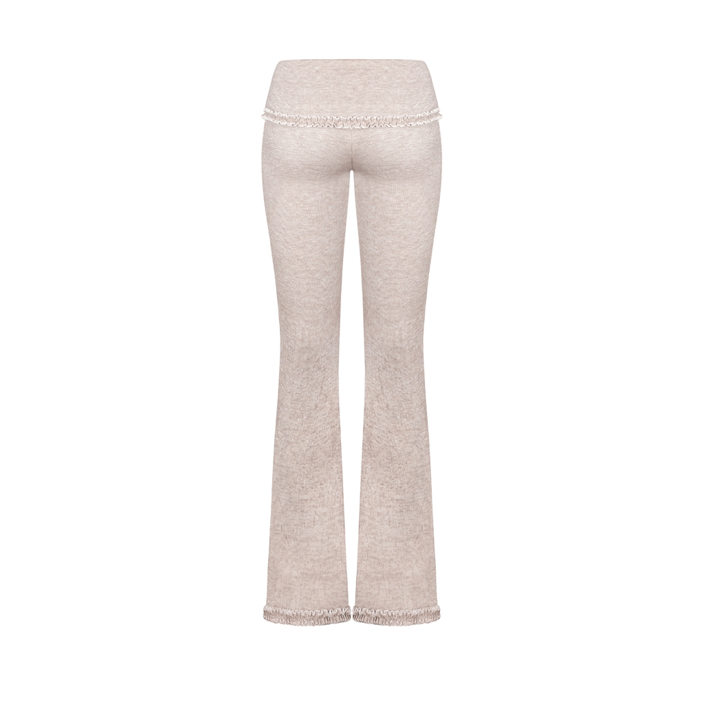 Nét điệu đà của set đồ được tôn lên nhờ chiếc quần ống loe cạp thấp hiện đại, khéo léo làm nổi bật vóc dáng duyên dáng của bé. Đặc biệt, hoạ tiết phối bèo lưng lật mềm mại tạo nên một điểm nhấn lãng mạn và nữ tính.