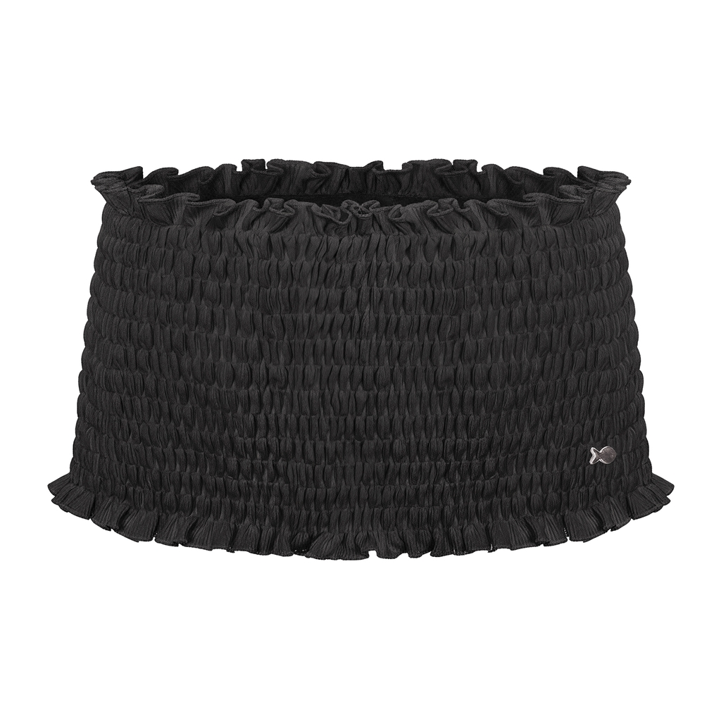 Phần chân váy ngắn thân nhún giúp tôn lên đôi chân duyên dáng của bé, với các đường nhún điệu đà dọc thân váy. Chi tiết đính logo cá nhỏ nhắn, tinh nghịch, xuất hiện tinh tế.