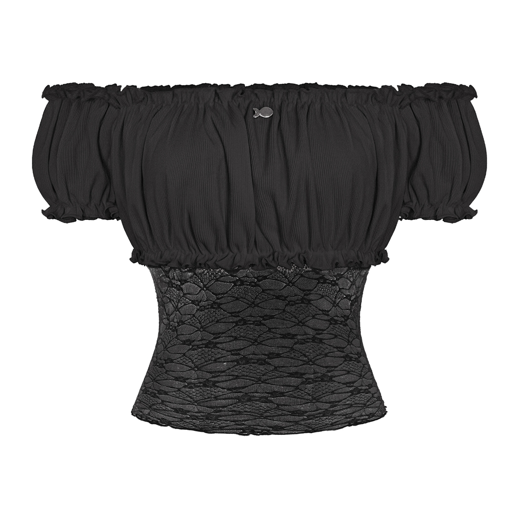 Áo được nhấn nhá bằng chi tiết nhún chun ngực xinh xắn, tạo độ bồng bềnh ngọt ngào. Đặc biệt, phần phối eo ren xuyên thấu tinh tế làm tăng thêm nét nữ tính và sự cuốn hút kiêu kỳ cho chiếc áo.