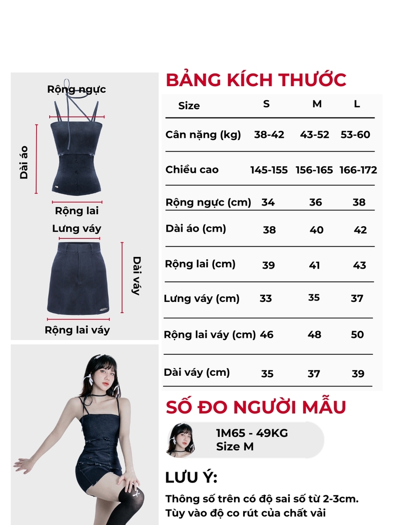 Kích thước set chân váy jean local brand DKMV Set Rayon