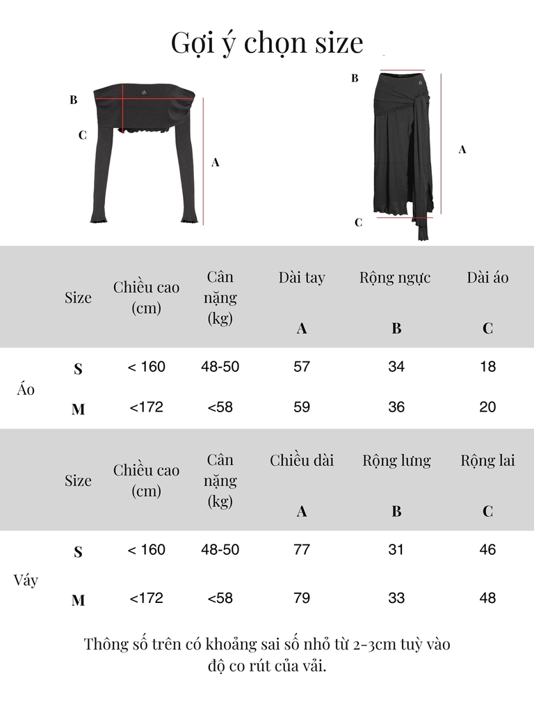 Size Dài váy Rộng lưng Rộng lai