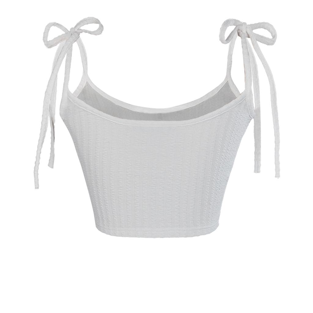 Với thiết kế cột nơ đầy sáng tạo, chiếc áo này ôm vừa vặn vòng eo, tạo nên điểm nhấn quyến rũ không thể chối từ của Áo croptop 2 dây cột nơ Lena SISTERS, sản xuất tại Việt Nam