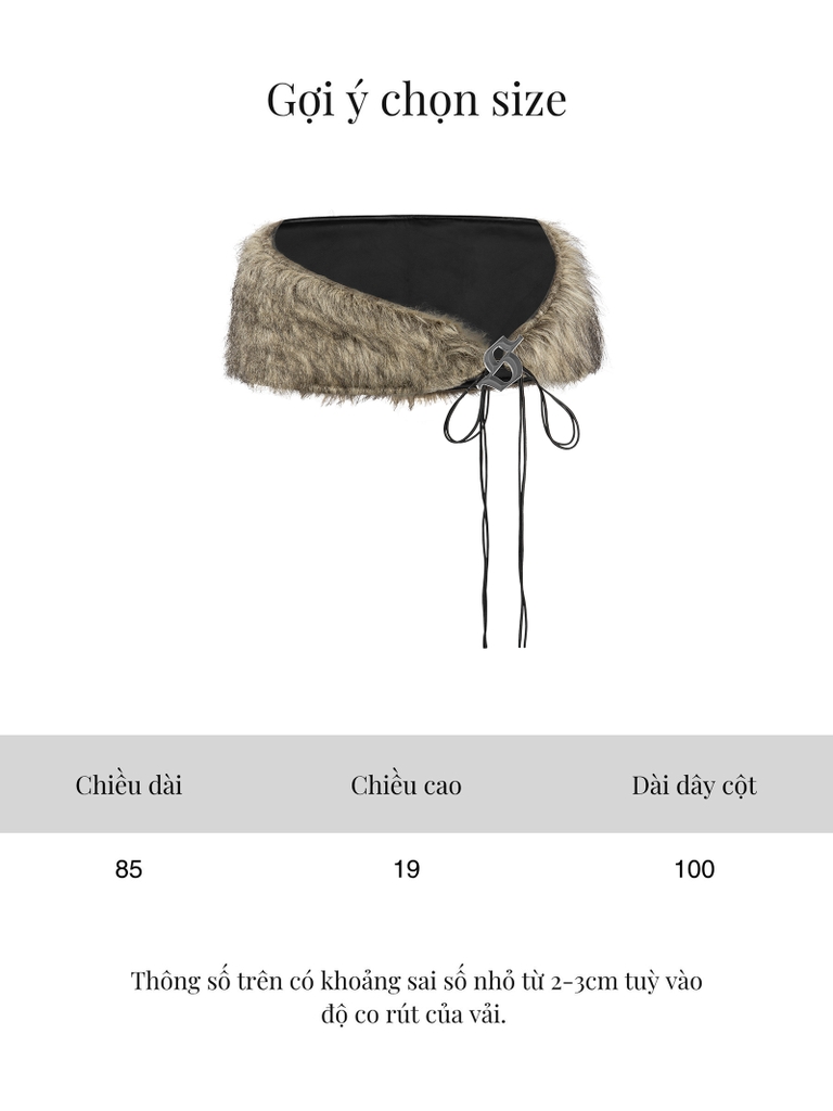 Thiết kế thắt lưng lông bản to dành cho nữ, tạo điểm nhấn nổi bật, thích hợp dùng làm đai váy hoặc phụ kiện phối đồ statement.