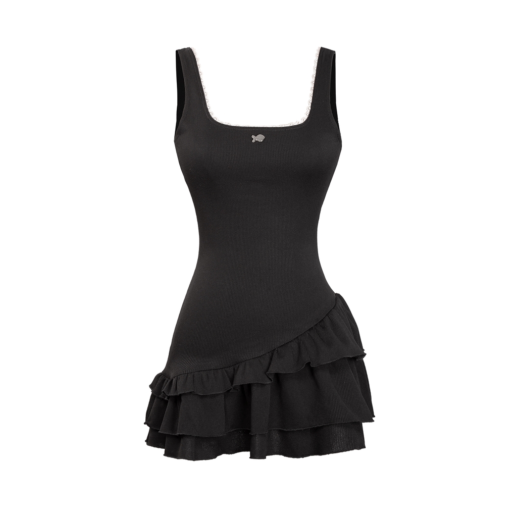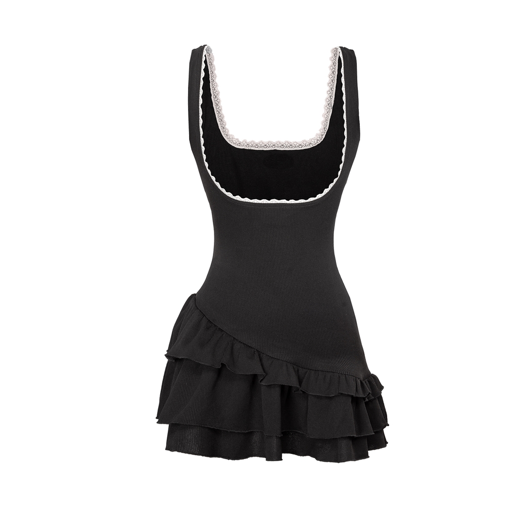 Chiếc váy mang thiết kế cổ vuông hở lưng, nhẹ nhàng tôn lên phần vai thon và lưng trần mảnh mai – như một lời thì thầm dịu dàng của tuổi trẻ.