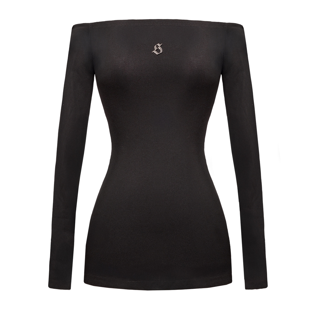 Đầm body gây ấn tượng với thiết kế trễ vai gợi cảm thu hút mọi ánh nhìn, điểm xuyến đơn giản với logo inox, sang trọng nhưng vẫn giữ trọn khí chất quyến rũ không thể chối từ.
