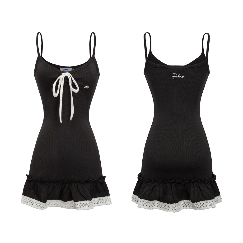Cảm nhận sự mềm mại trong chất liệu thun co giãn. Phần ren tinh tế được điểm xuyết ở viền cổ áo và eo váy, tạo nên sự ngọt ngào và nữ tính.