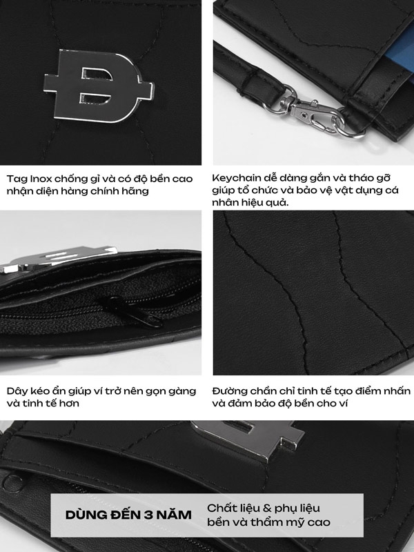 2 Ngăn Đựng Thẻ: Sản phẩm được trang bị hai ngăn riêng biệt - một ngăn chính và một ngăn phụ. Điều này giúp bạn tổ chức và phân loại thẻ tín dụng, thẻ ID và các vật dụng cá nhân một cách hiệu quả.