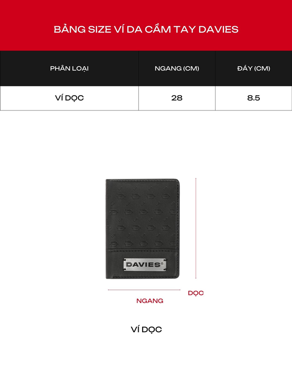 Chất lượng sản phẩm luôn là ưu tiên hàng đầu của DAVIES. Đảm bảo hàng chính hãng qua logo thương hiệu được khắc nổi bật. Tính năng tiện lợi được tích hợp trong thiết kế ví ngắn local brand Identity Wallet